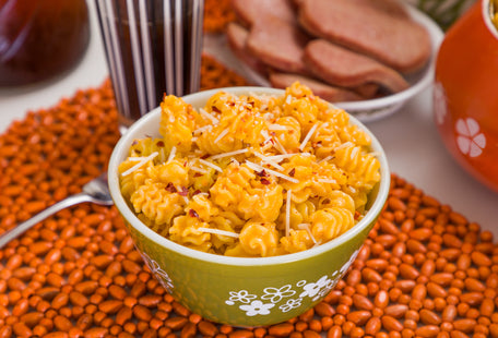 Technically, ya… our Deluxe Cheddar Style Radiatore & Cheez doesn’t have any cheese. But whether you’re vegan, or you’re just loving a plant-based diet, we know that you’ll love it’s savory, rich cheddar flavor. These radiatore hit different, and will have your whole dinner table go quiet, except for the clinking of spoons and occasional deep sigh of satisfaction.